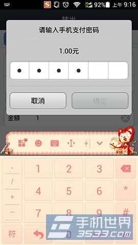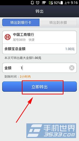 3)点击“立即转出”之后,输入支付密码,然后在“确定”上点击一下,就可以把余额宝的钱转到银行卡了。(如下图所示)